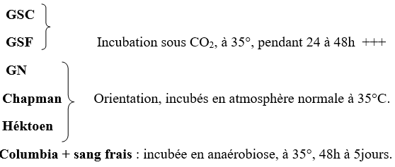 D’autres milieux sont utilisés ou conditions d’incubation sont réalisées selon l’orientation du clinicien (milieux spécifiques).